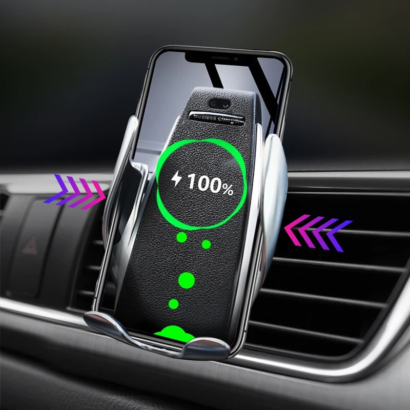 .Images of Automatic Clamping Wireless Charger In Car Air Vent Mount Holder 10W Fast Charging for iPhone XR XS Max XR X 8 Android Phone